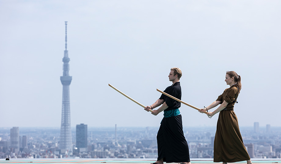 Start the day with sword training held 160 meters above the ground. Refresh the mind and body by practicing our original training routine that combines the movement of kenjutsu, swordsmanship, and deep breathing in the clear morning air.