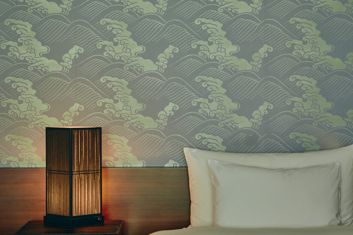 Kyo-karakami paper is characterized by beautifully hand-printed traditional patterns on high-quality washi, Japanese paper, such as torinoko paper. Blending pigments such as crushed white oyster-shell powder, red iron oxide, ultramarine, yellow ochre, India ink, and mica on a 130-year-old woodblock, the pigments are pressed onto the paper. Today, there are only two places in Kyoto that can create these kyo-karakami papers, and one of them, Kyo-karakami Maruni, is responsible for the paper used in the rooms of HOSHINOYA Kyoto. Each paper is made with the care and skill of an experienced craftsman, whereas no paper is exactly the same. As the sunlight touches the paper, the pigments shine, making the patterns look three-dimensional. The craftsmanship of Kyoto can be felt as one relaxes in the guest rooms during their stay.
