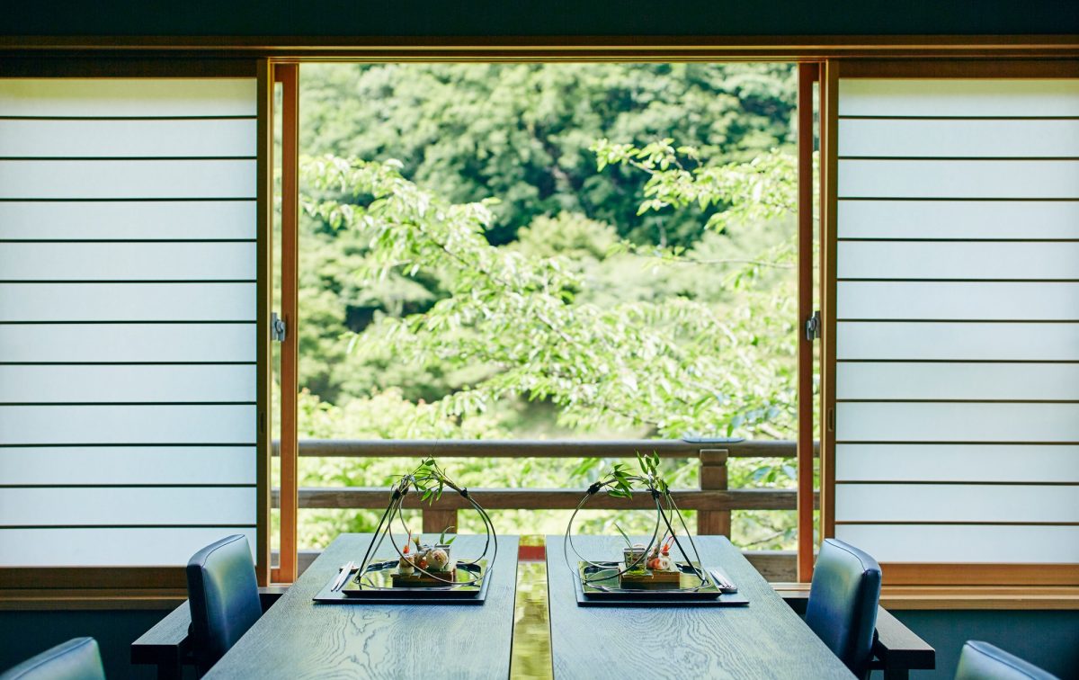 At HOSHINOYA Kyoto, surrounded by the mountains of Arashiyama, guests can enjoy the changes of the four seasons with their five senses. For guests to have an enjoyable stay at this location, changes in nature according to the Japanese calendar and seasons are valued and hence reflected in the dishes. For spring, the coming of spring is expressed using bitter flavors and soft, fresh scents and for the summer, the cool is represented using ingredients, plates, and aesthetics. Earthy scents of the mountain are captured to show the fruitful landscape of autumn and lastly for winter, the root vegetables, where sweetness increases during winter, are used to bring out nutritious and rich flavors. Moreover, based on the idea, dosan-dohou, which means cooking using the local method for local ingredients. Producers know the best way to cook the ingredients, so these methods are incorporated into how the dishes are prepared at the dining of HOSHINOYA Kyoto.