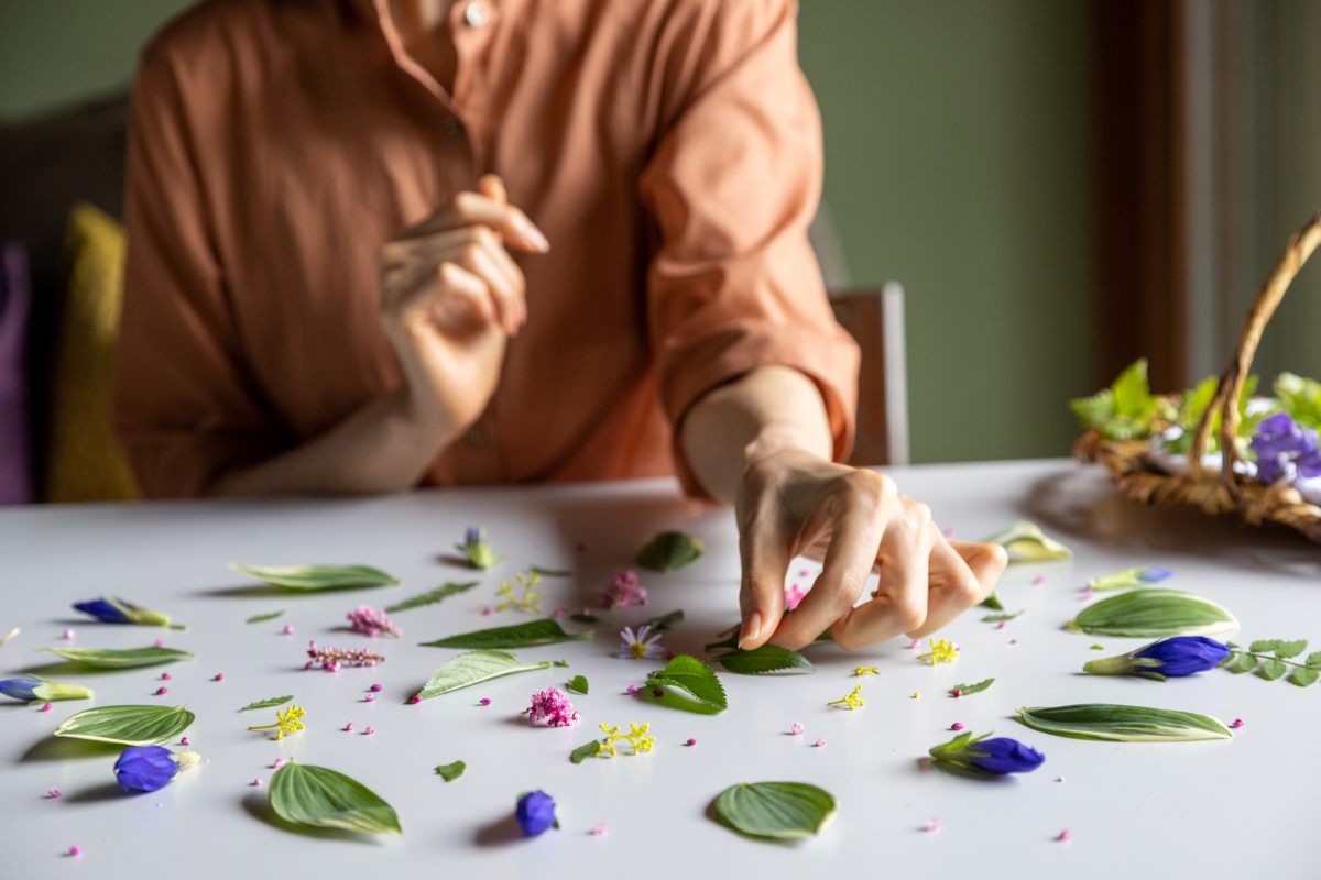 In this activity, guests will select the petals and leaves of wildflowers collected under the guidance of a gardener and arrange them in a mandala pattern. Flower petals and leaves can be selected during the “Valley Village Tour” by picking up fallen ones, harvesting those about to wither, or pruning the ones that can be removed without harming the environment and plants. Guests can then take them back to their room and arrange them on their desk however and whenever they want. Flowers, petals and leaves change every day and their color and shades are never the same, thus each flower arrangement is truly unique. Picking up the flowers and leaves one by one and immersing themselves in the environment, guests will reconcile their body with nature and lower the voice of their “head”.