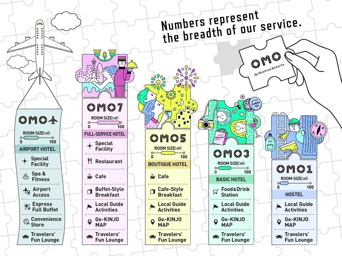 Within the OMO brand, the numbers and icons following "OMO" indicate the scope of services offered. These numbers allow guests to choose the optimal hotel according to their travel purpose and how they want to spend their time. OMO7 Yokohama is an OMO7, a full-service city landmark hotel with a café and restaurant, among other facilities, planned. Currently, there are three OMO7 properties: OMO7 Asahikawa, OMO7 Osaka, and OMO7 Kochi.