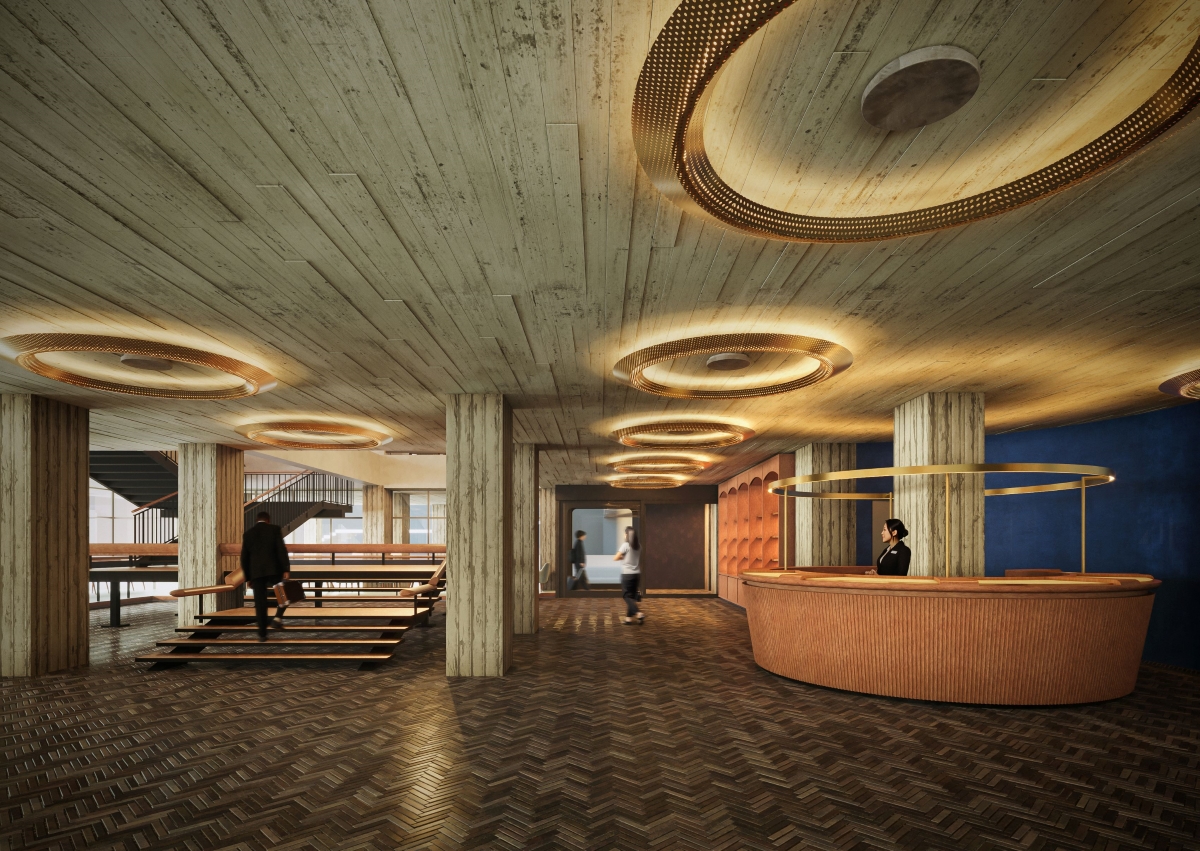 In the first-floor lobby, which is visible to many people, special lighting incorporating elements of the circular lighting from the former assembly hall will be installed. The way the light leaks and the materials used for the lighting will be newly designed to create an uplifting atmosphere suitable for a hotel entrance. Furthermore, the colors used in the hotel's guest rooms and public areas will be inspired by the colors of tiles, furniture, and carpets used in the former City Hall.