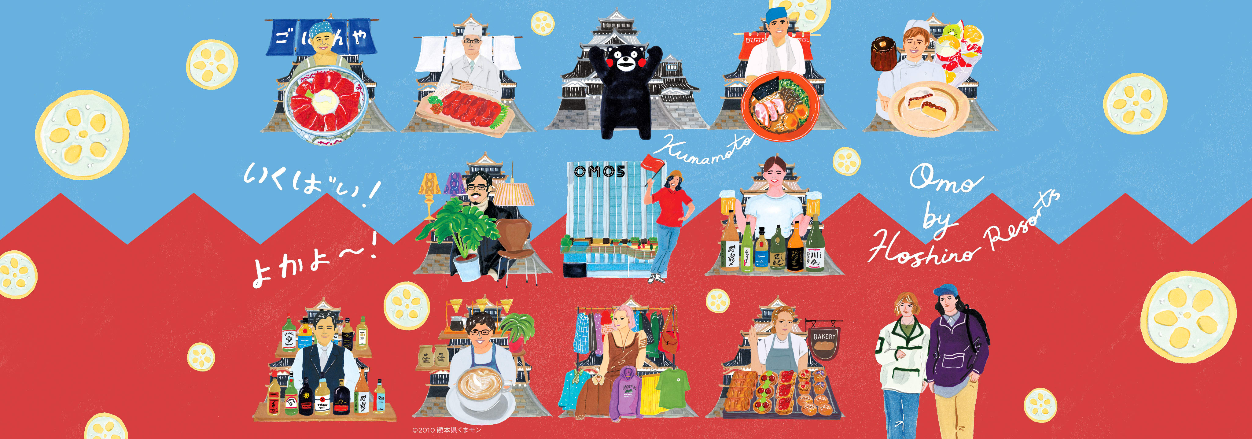 Kumamon, a popular local character that enlivens the streets of Kumamoto, will appear in person to give lectures alongside OMO staff. The OMO staff will also suggest other little-known ways to enjoy Kumamoto through a free guide and the Go-KINJO map.